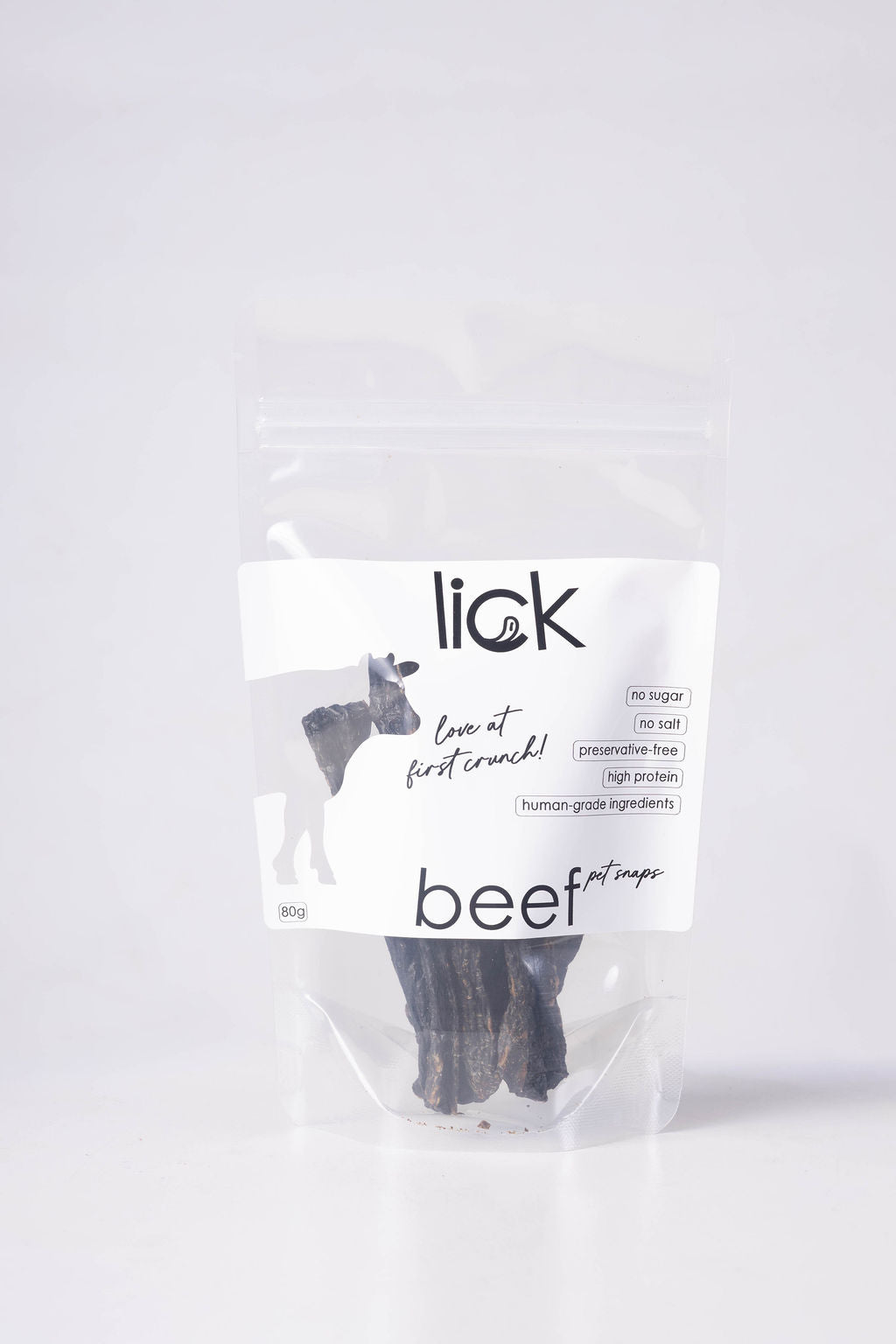 Lick Pet Nutrition’s Beef Pet Snaps are protein-rich and packed with essential nutrients. These treats are bursting with flavour and perfect as a high-value reward.