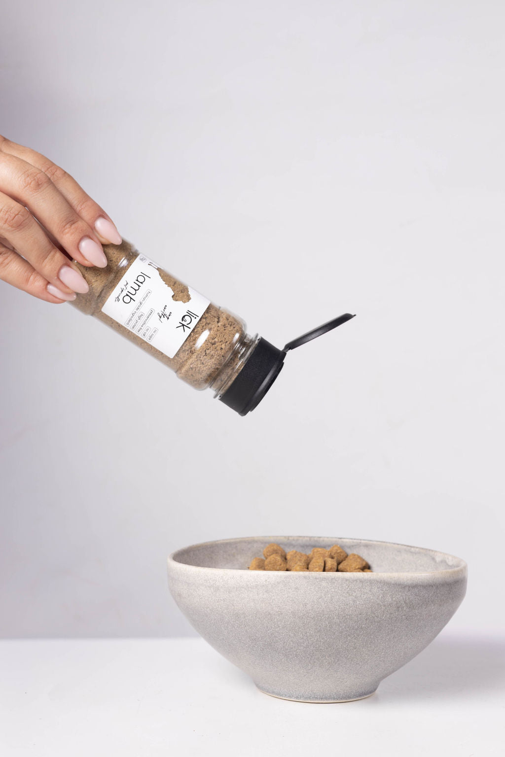Lick Pet Nutrition’s Lamb Pet Sprinkle is a tasty, nutrient-rich topper to make any meal irresistible. Ideal for picky eaters or dogs needing a boost of protein.